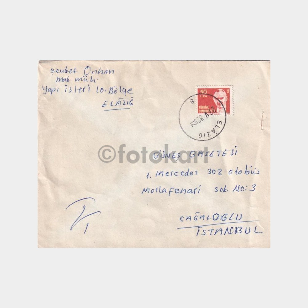 Elazığ, Posta Tarihi-Şehir Damgalı Zarf