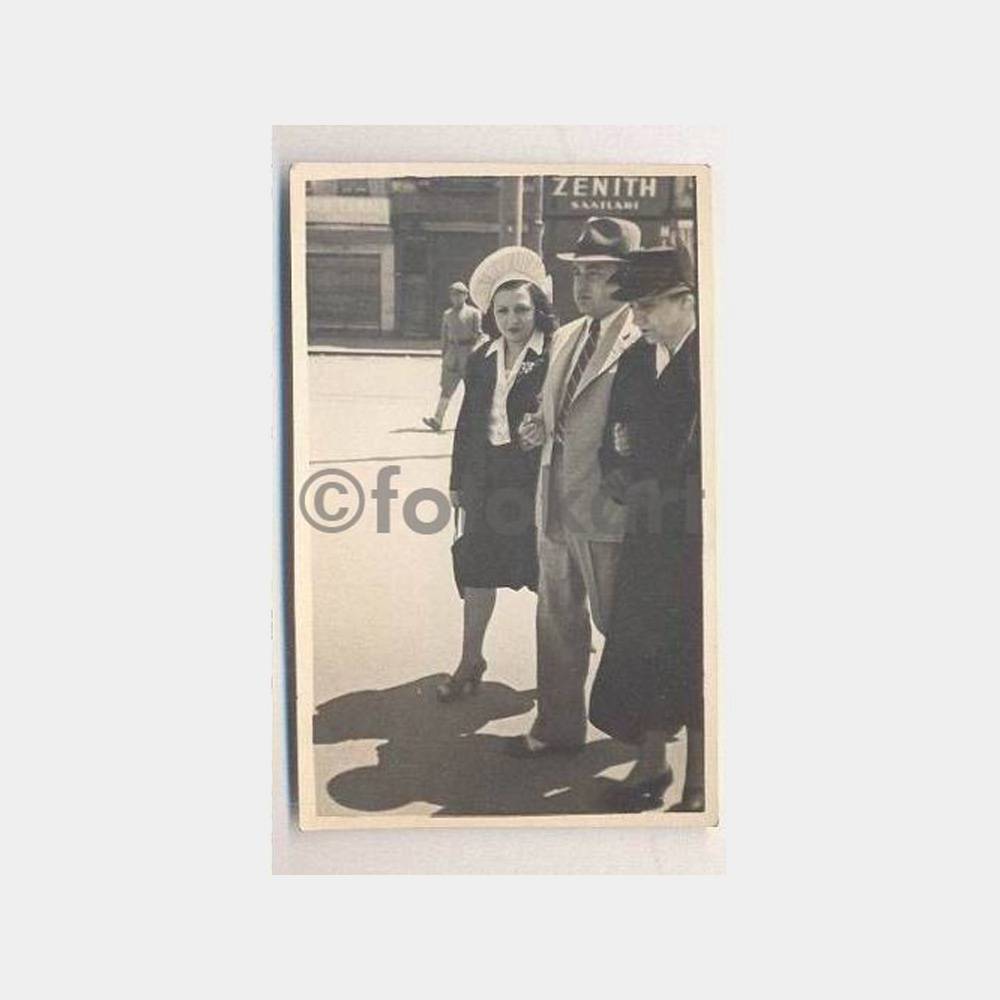 Fotoğrafta arka planda zenith saatleri mağazası görüntülenmekte, dönemin modası hanım şapkaları ilginç