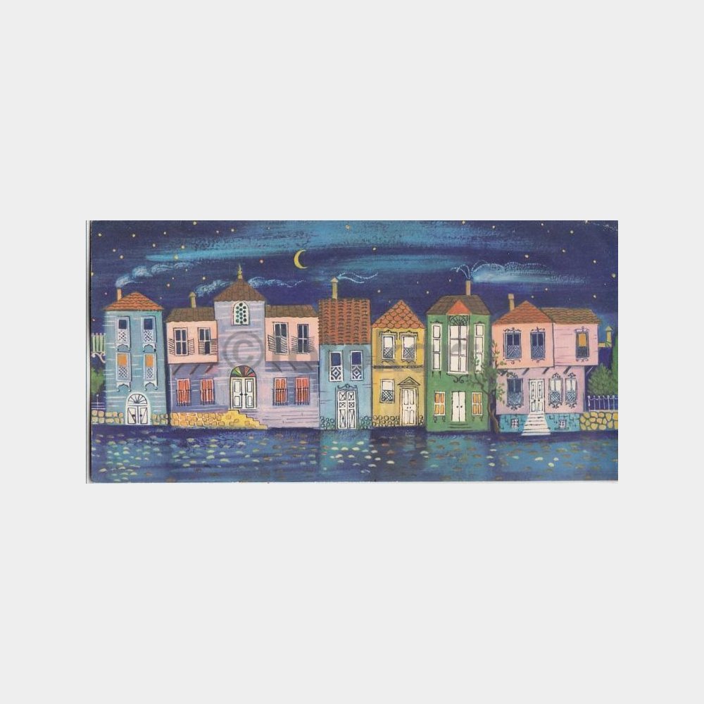 Eski İstanbul Evleri Desenli Doğan Kardeş Tebrik Kartı
