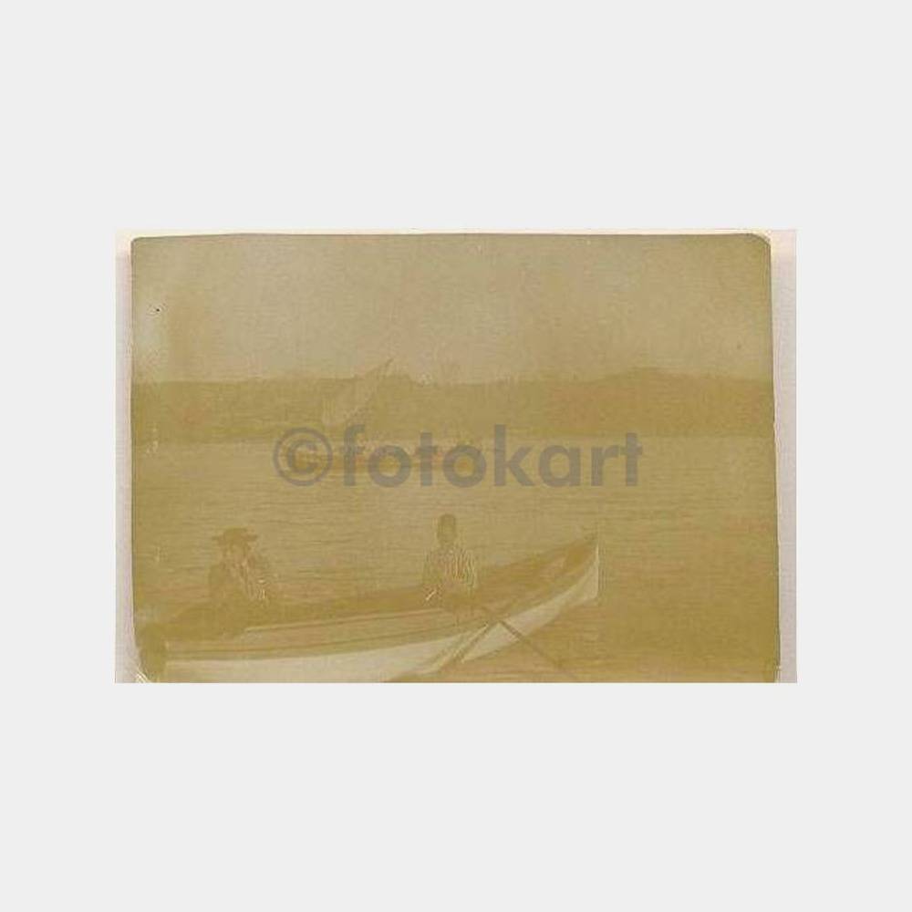 8 x 5,5 cm. Ebadında çok eski bir fotoğraf-başında fesi bulunan kayıkçı ile yine başında güzel bir şapka bulunan bir bayan yolcusu,muhtemelen 1915 ler beyaz rus göçmenlere ait bir görüntü olabilir. Resmin netliği koyu şekildedir. Boğaziçi konulu
