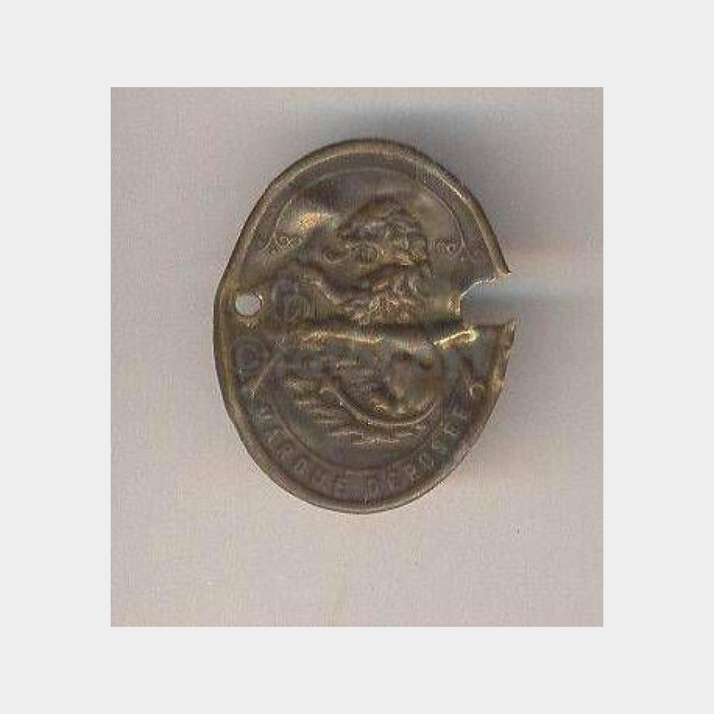4 x 3 cm ebadında, üzerinde aslan motifi bulunan marque deposee (trade mark) ticari marka -yazısı var eski bir makine üzerinden düşmüş.