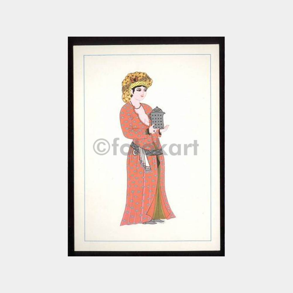 18.asır eski türk ev içi kıyafet resimli baskılı tebrik kartı