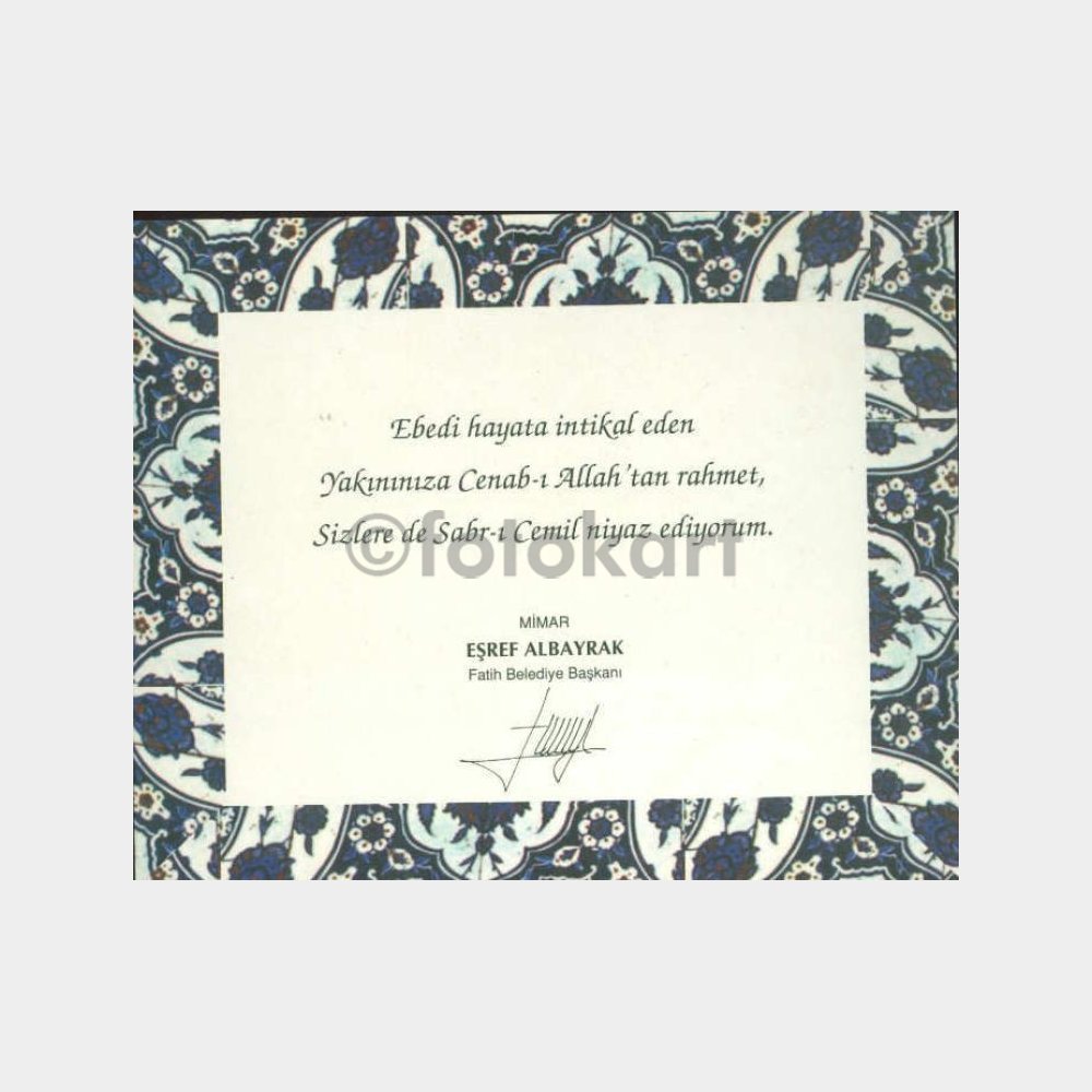 Fatih Belediye Başkanı Eşref Albayrak imzalı taziye kartı.