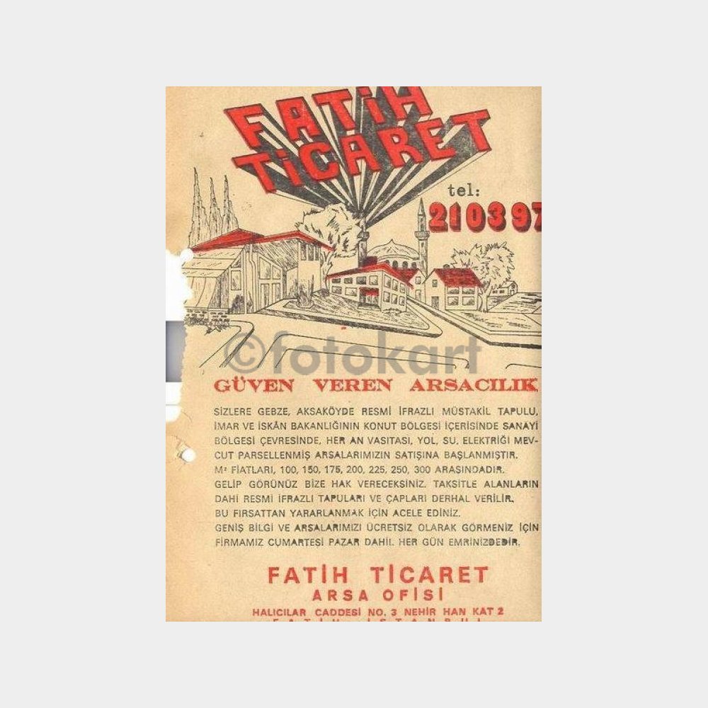 Nostaljik bir el ilanı-İstanbul emlak arsa gayrimenkul konulu, 1950-1960 lı yıllar.