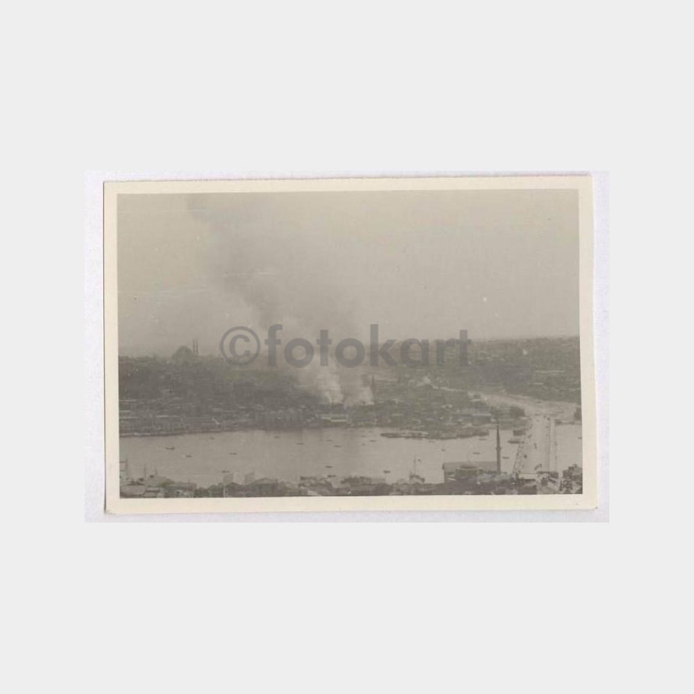 10 x 7 cm ebadında, Galata Kulesi’nden çekilmiş Fatih cephesinde bir yangın görüntüsü.