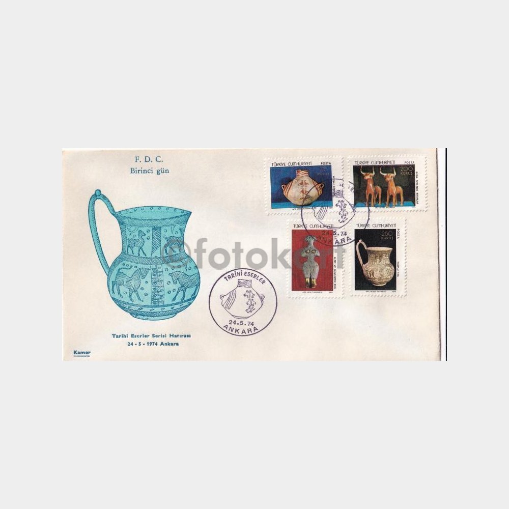 FDC-İlk Gün Zarfı, 1974 Tarihi Eserler-Ankara Müze Antik Kaplar