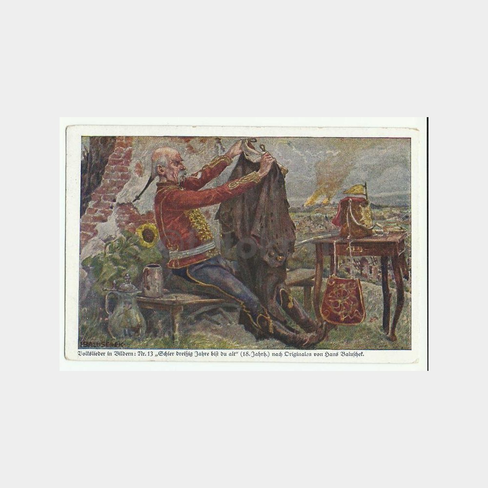 Notes: An illustration depicting a 19th century German Folk Song: Schier dreissig Jahre bist du alt (Der alte Mantel)