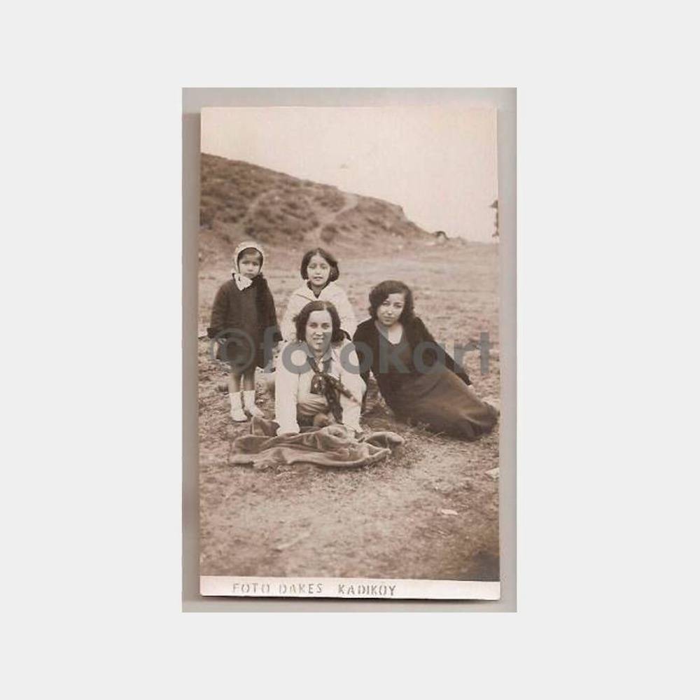 Yanlardan kesik şekilde, ismi pek duyulmamış bir Kadıköy foto stüdyosu ürünü,arkası silik yazılı-7,5 x 12 cm albümden çıkma