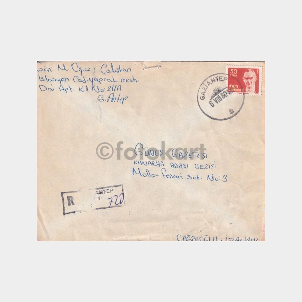 Gaziantep, Posta Tarihi-Şehir Damgalı Zarf