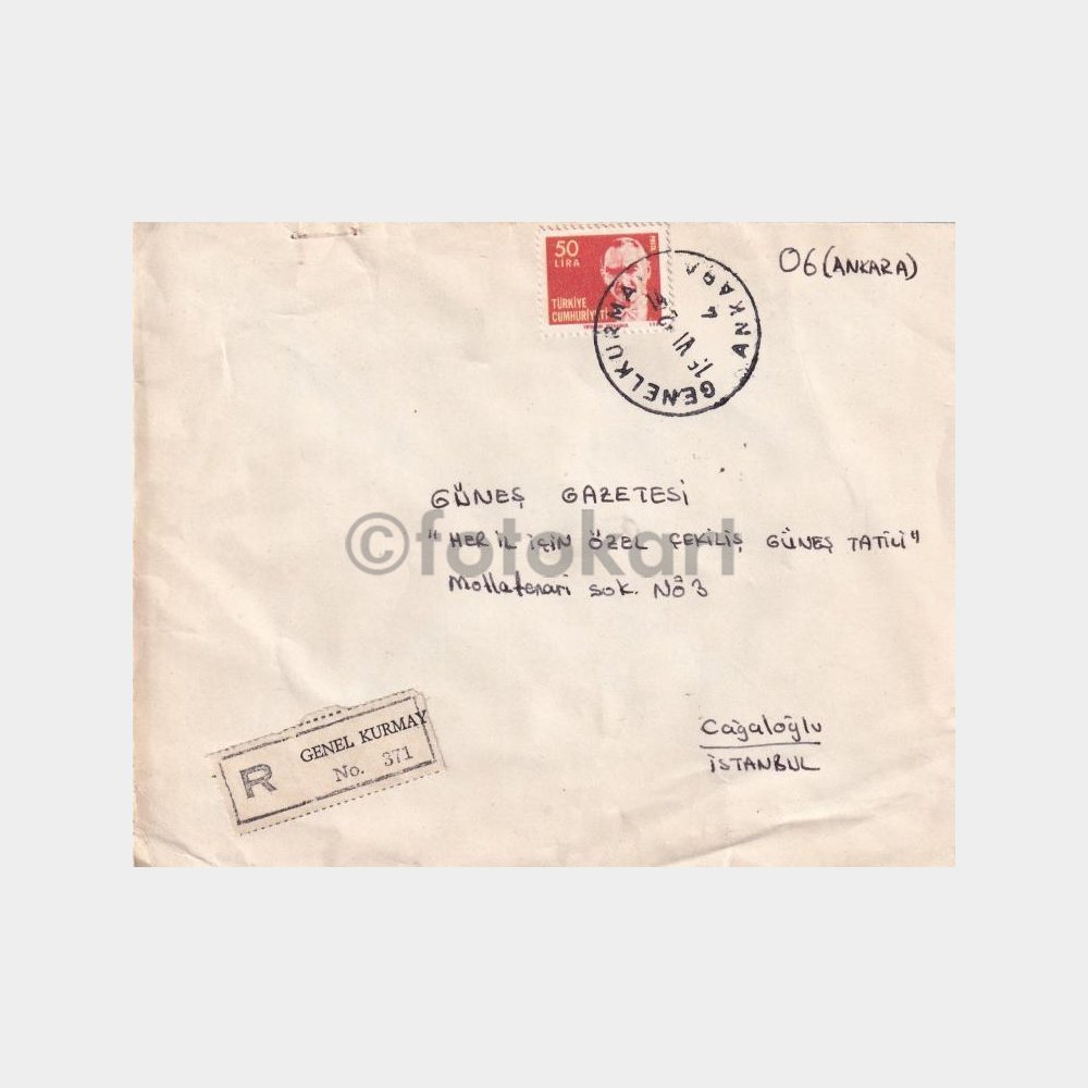 Genelkurmay-Ankara, Posta Tarihi-Şehir Damgalı Zarf