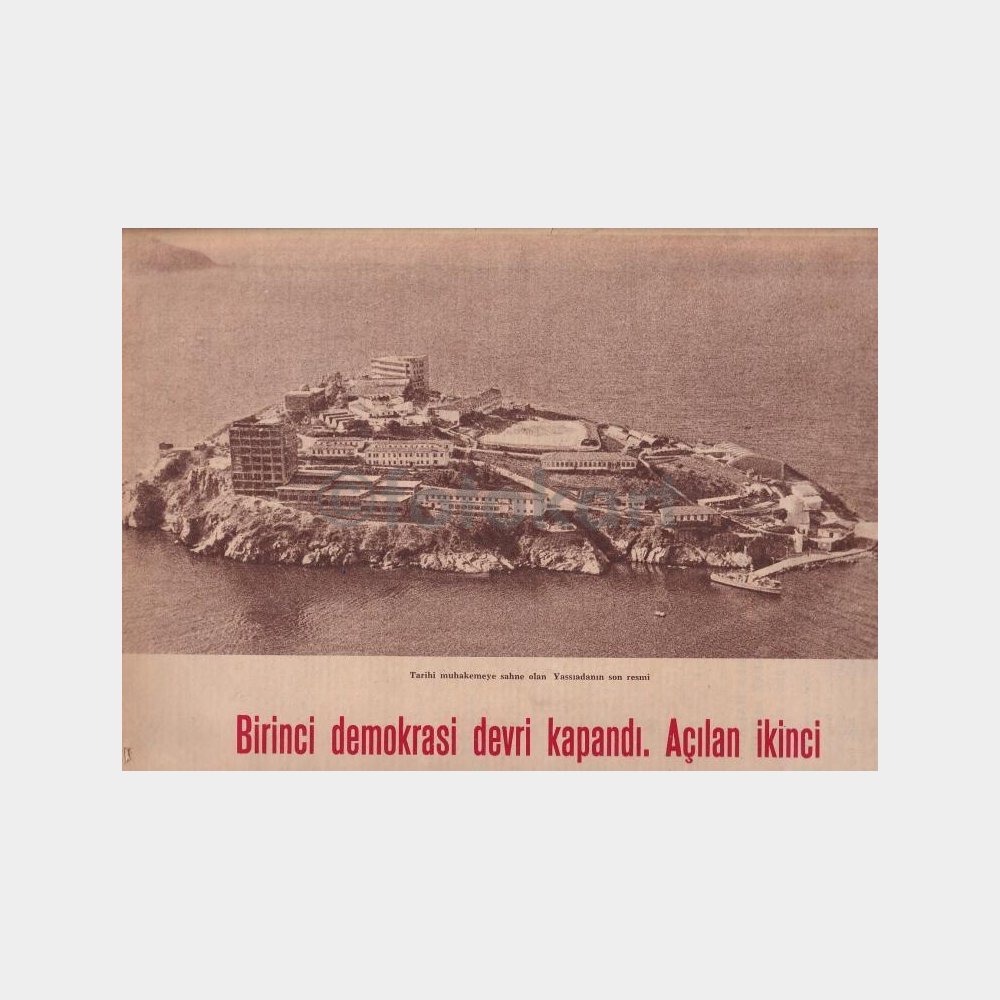 32 sayfa, temiz. Yassıada idama mahkum olanlar-son hüküm. Arka sayfa Yassıada dönem resmi.