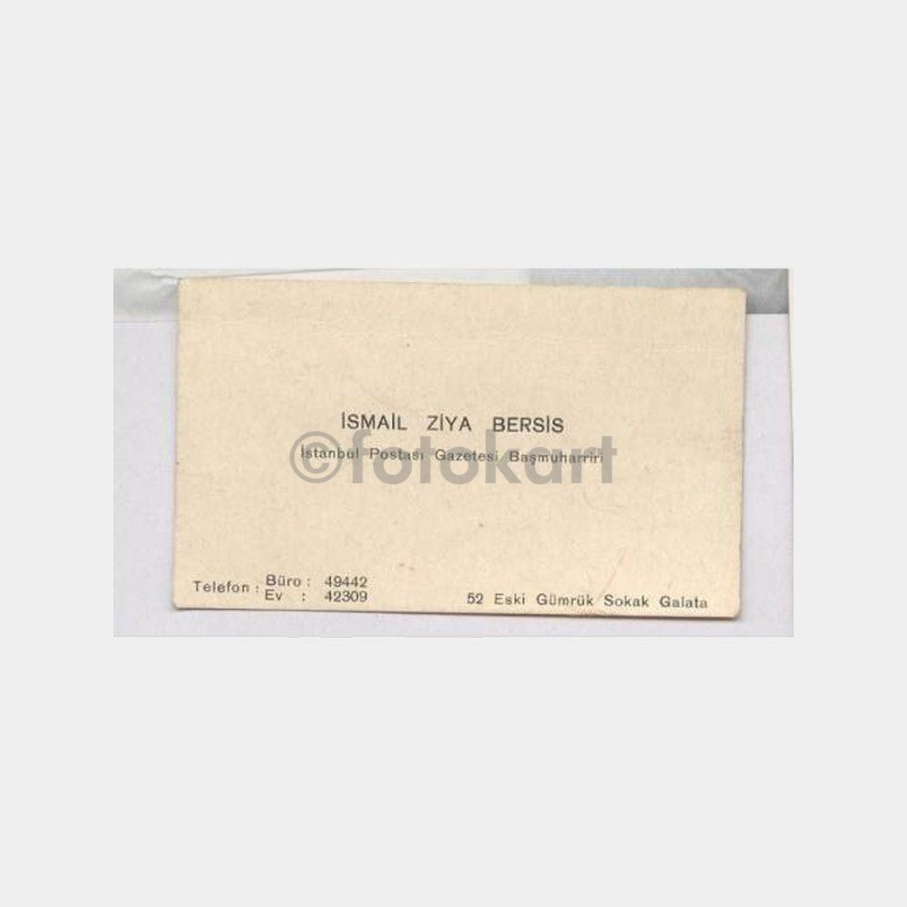 İsmail Ziya Bersis – İstanbul Postası Başmuharrir Kartvizit