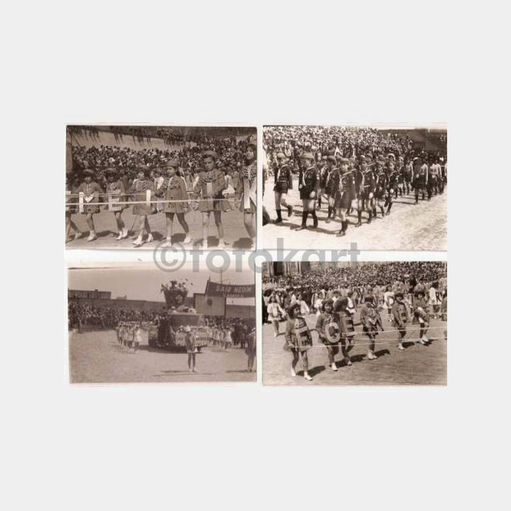 9 x 14 cm ebadında 4 adet arkası boş fotoğraflar, Şeref stadyumunda yapılan 23 nisan çocuk bayramı gösterileri görüntüleri, foto zafer Beşiktaş kaşesi var