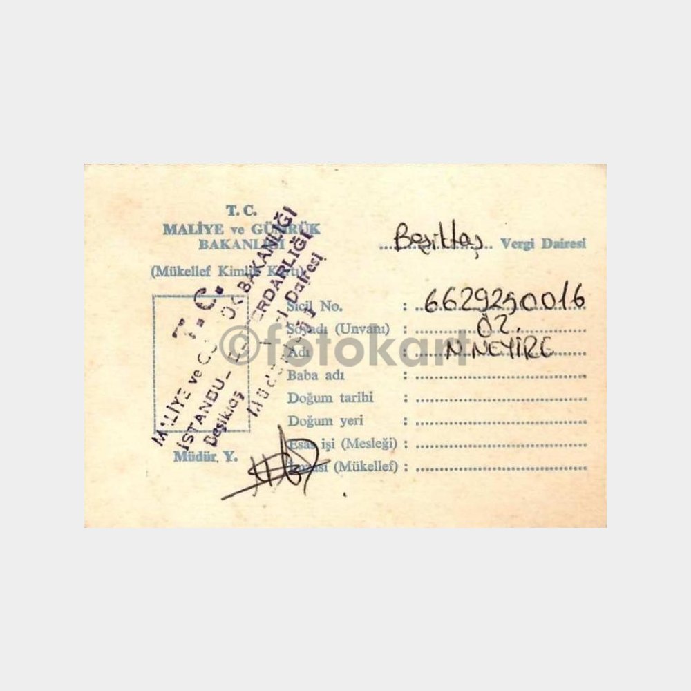 İstanbul Defterdarlığı Beşiktaş Vergi Dairesi Mükellef Kartı