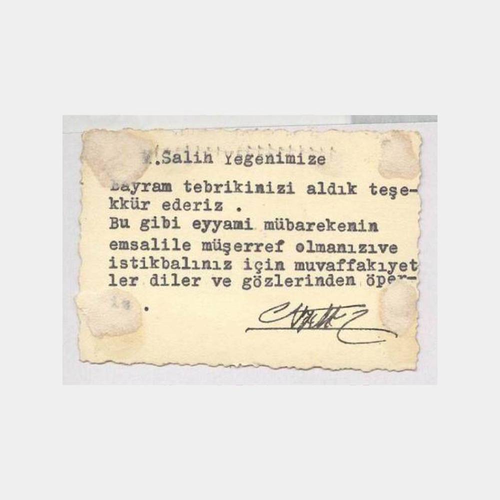 8,5 x 4 cm tebrik fotokart, arkası albümden alınma