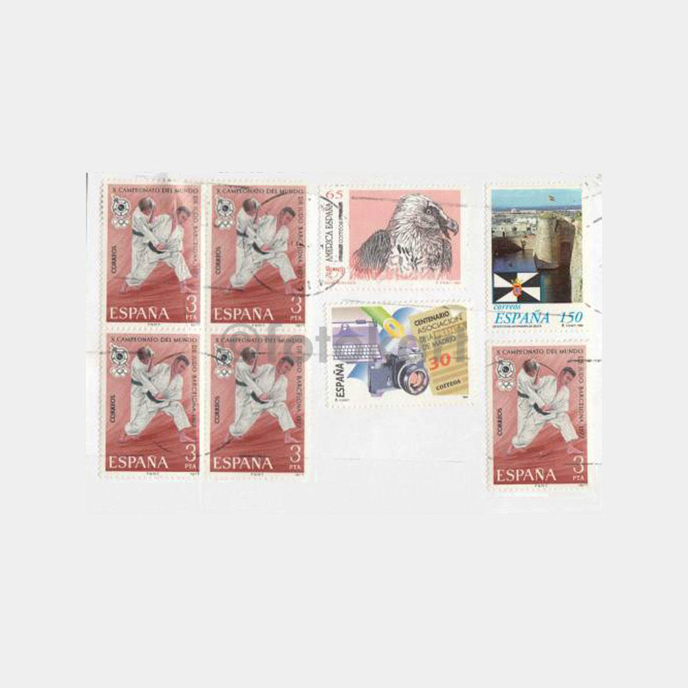 Bir zarf parçası, kağıt üzerinde yapışık pullar.