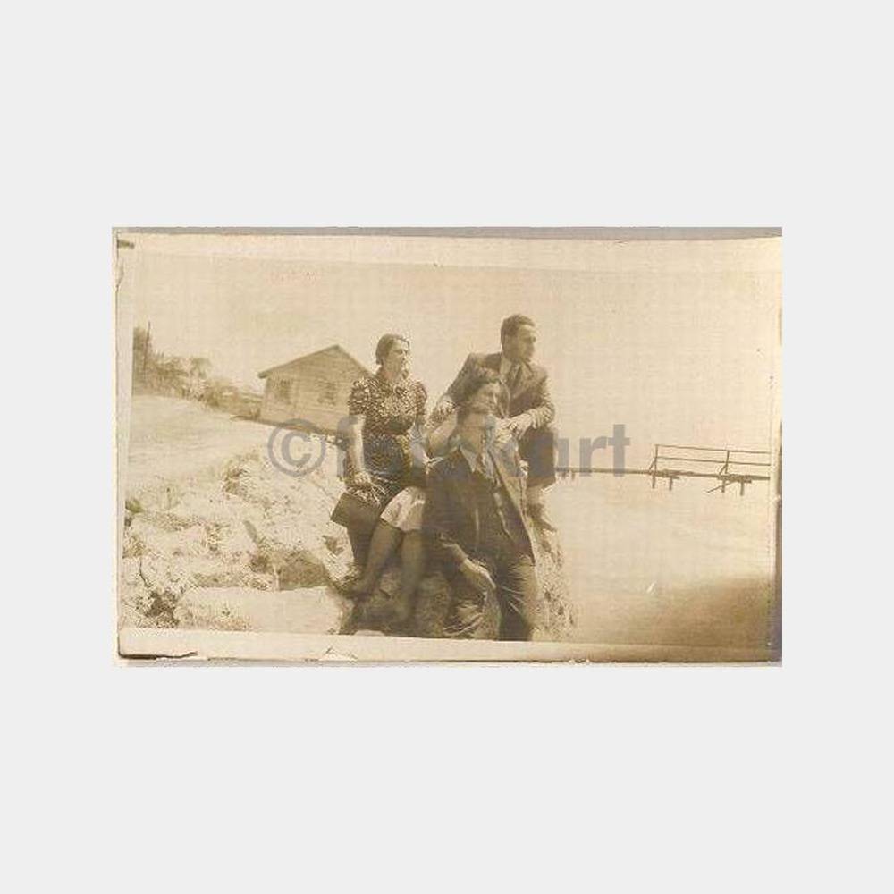 Sahilde hatıra fotograf arkası boş ancak Kalamış Fenerbahçe ve Moda yönünde sahil kıyısı görüntüsü ihtimali yüksek, arka tarafta iskele binası şeklinde bir yapı var.