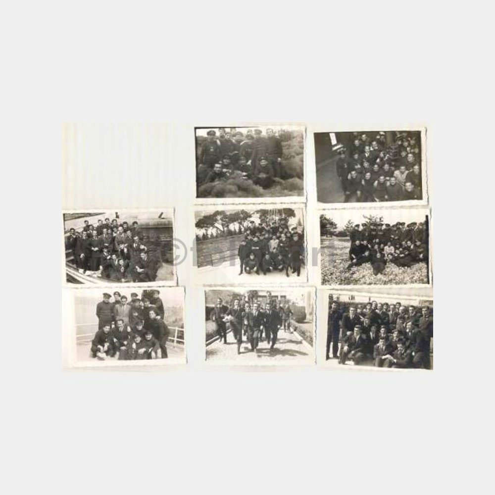 6 x 9 cm ebadında, arkası yazılı. 8 adet foto. Ortaköy yüksek denizcilik okulu öğrencilerinin 3.4.1948 tarihinde yapılan geziye ait fotoğrafla. Önce okula ait bir motorla karşı kıyıya geçilmiş,