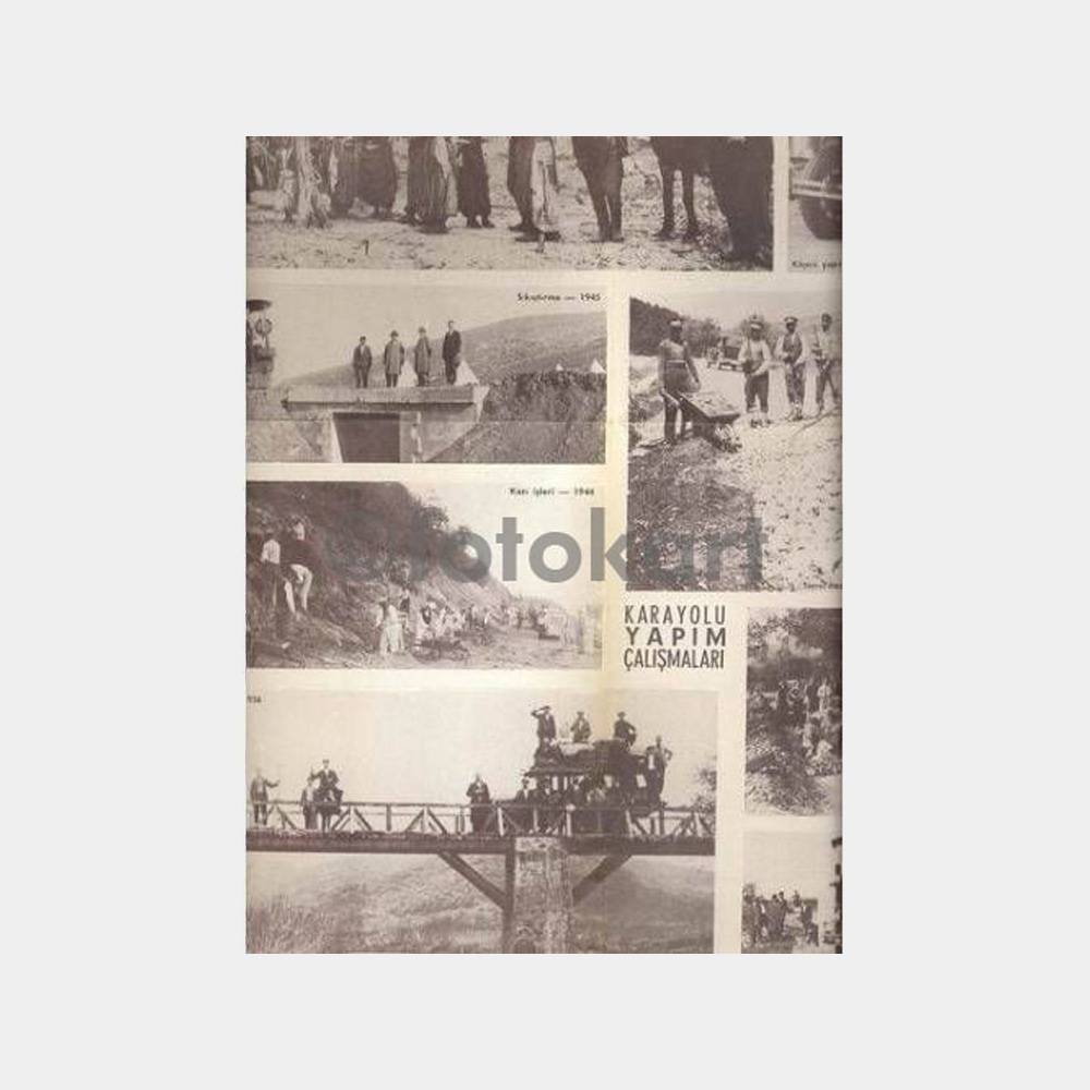 Karayolları çalışma broşürü arka yüzü geçmiş resimlere yer verilmiş ,ön yüzü günümüz çalışmalar 1973 tarihli