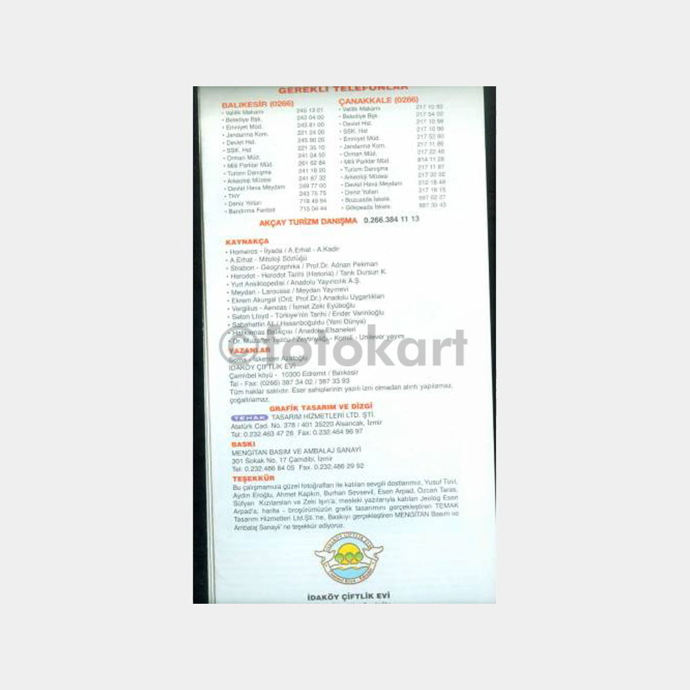 İdaköy çiftlik evi tarafından hazırlanmış, büyük ebat broşür. Önlü arkalı Kazdağı hakkında bilgi ve resimler mevcut.