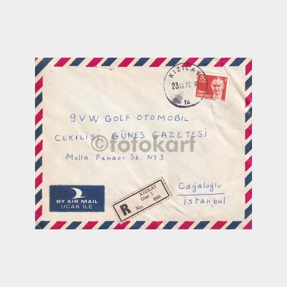 Kızılay-Ankara, Posta Tarihi-Şehir Damgalı Zarf