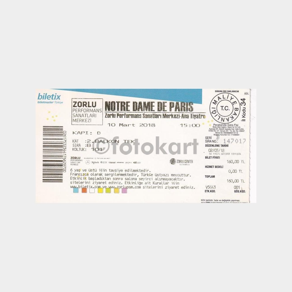 Koleksiyon Amaçlı Giriş Bileti – Notre Dame de Paris, Zorlu Performans Sanatları