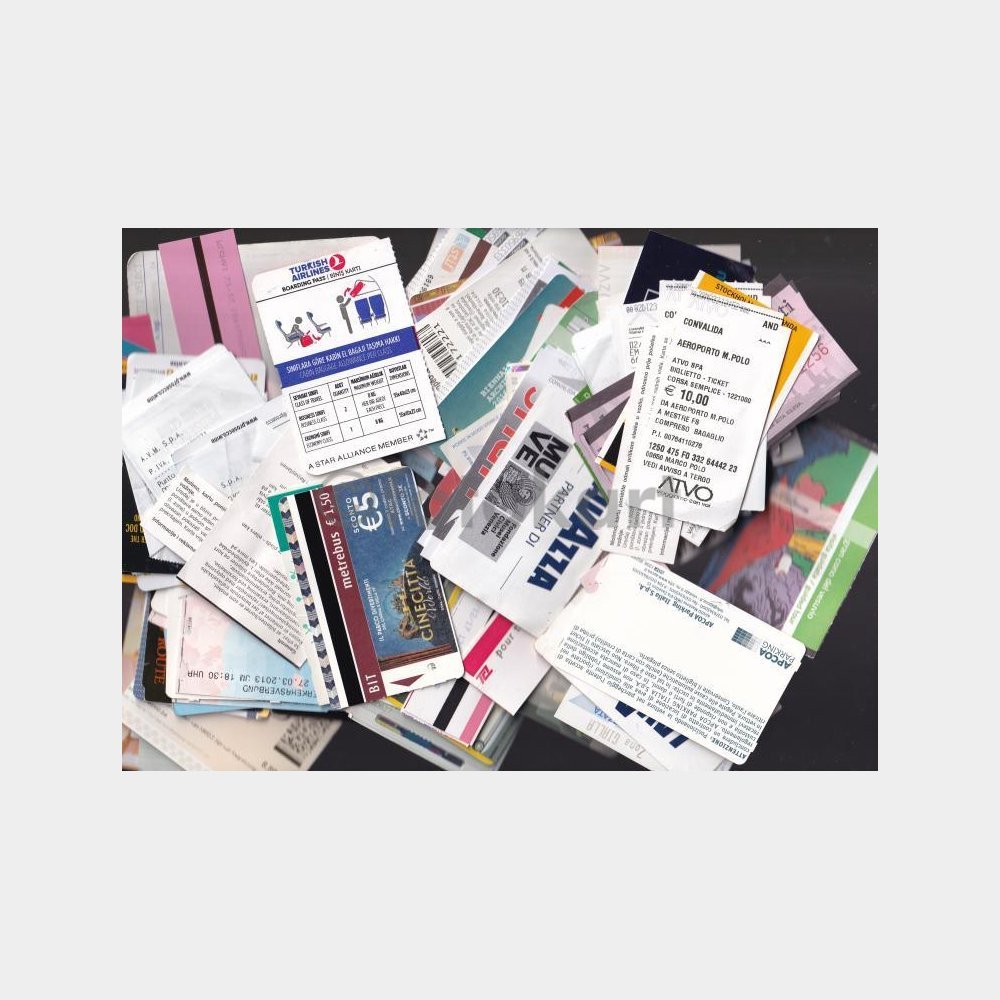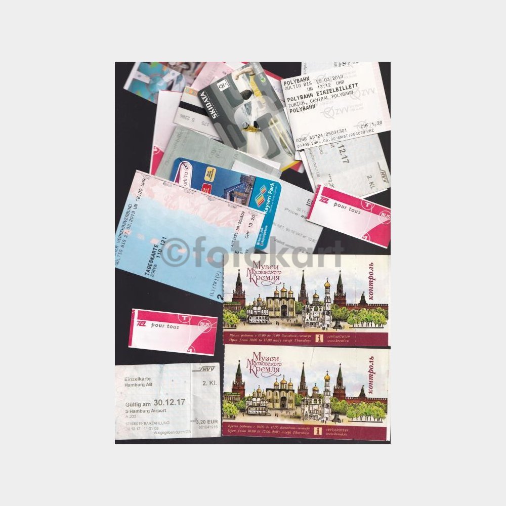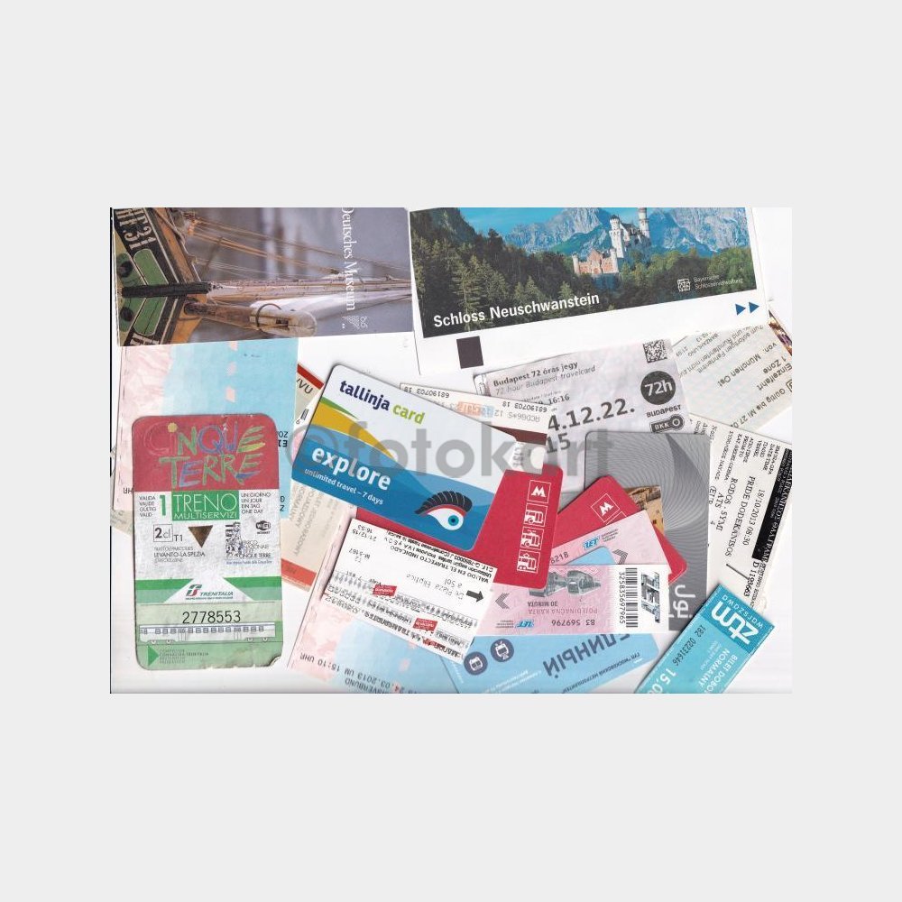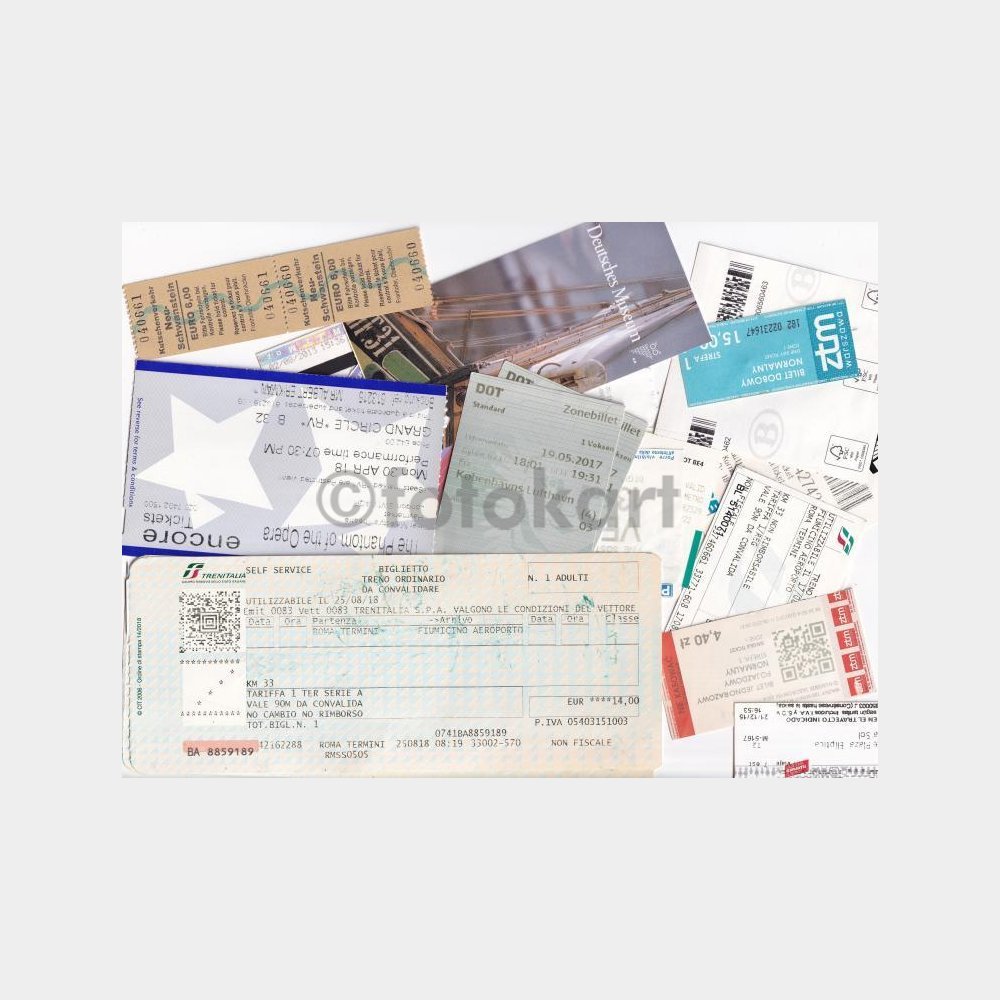 Bulunmaz bir efemera lotu, Avrupa ülkeleri menşeili. Ulaşım araçları, müze etkinlik vb. giriş biletleri.