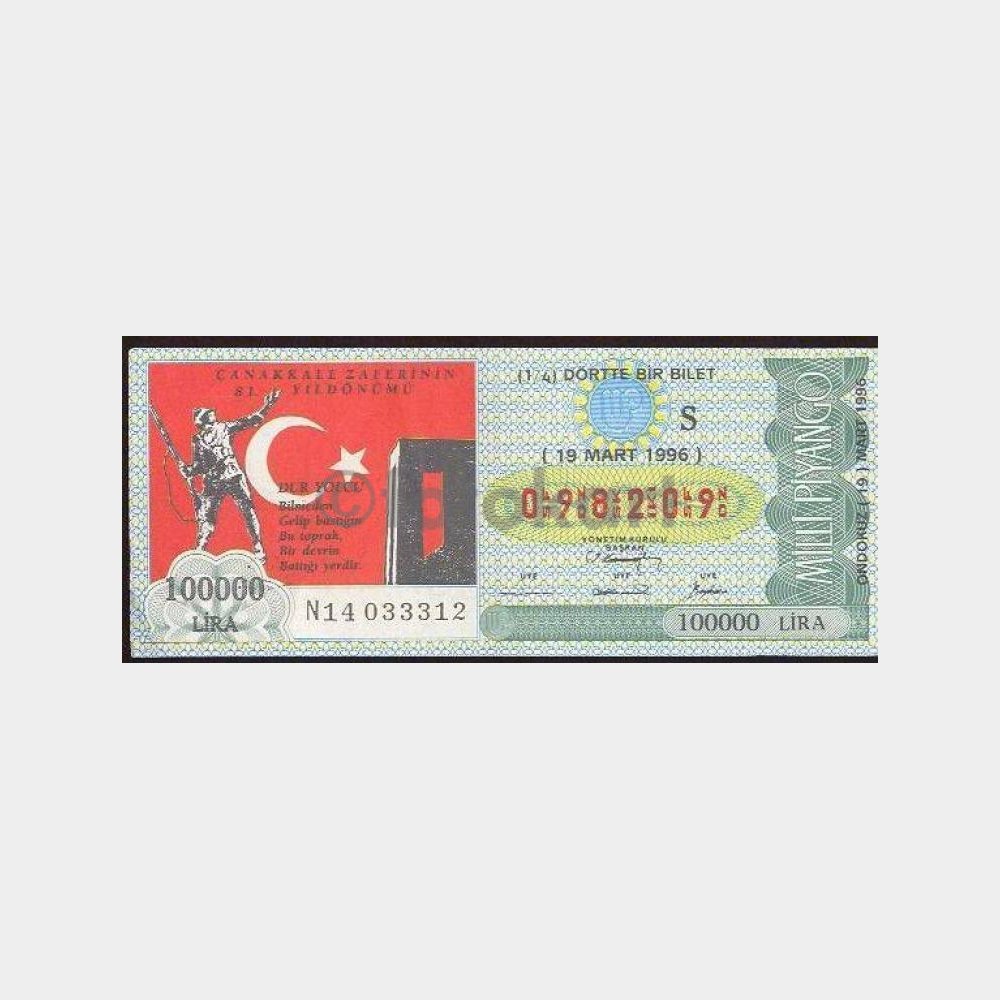 Milli Piyango – 19.03.1996 S-098209 Çanakkale 81. Yıl