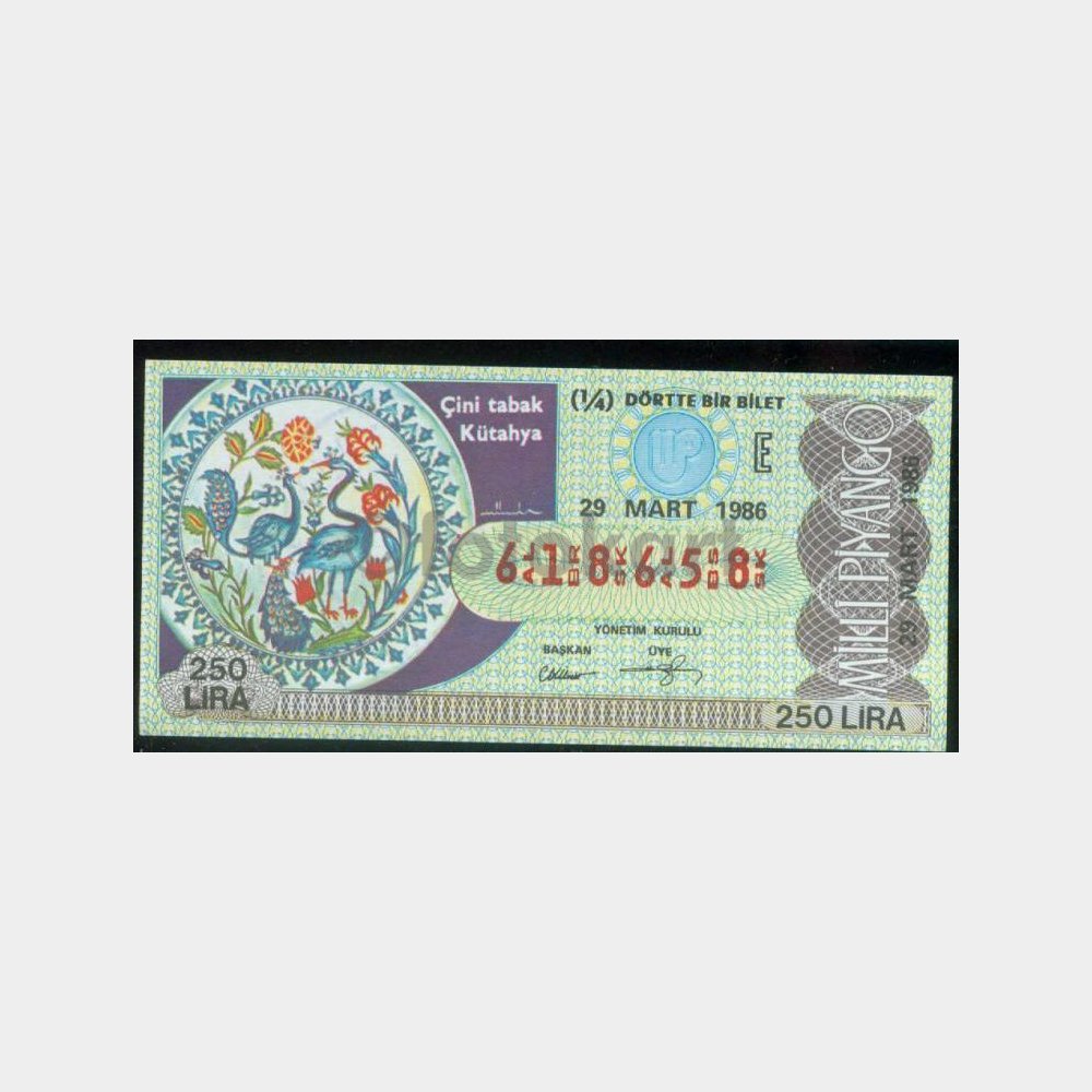 Milli Piyango – 29.03.1986 E-618658 Kütahya Çini