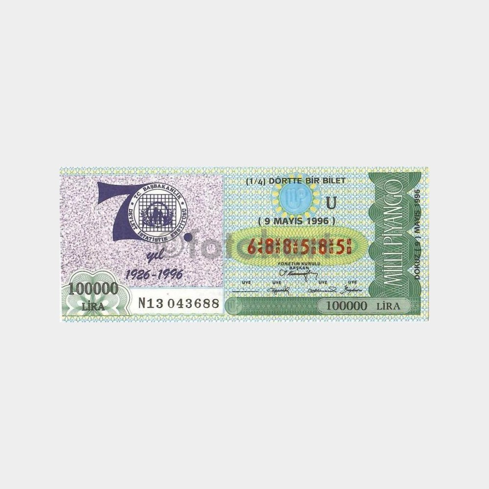 Milli Piyango Bileti, 09.05.1996 Devlet İstatistik Enstitüsü 70. Yılı U-688585