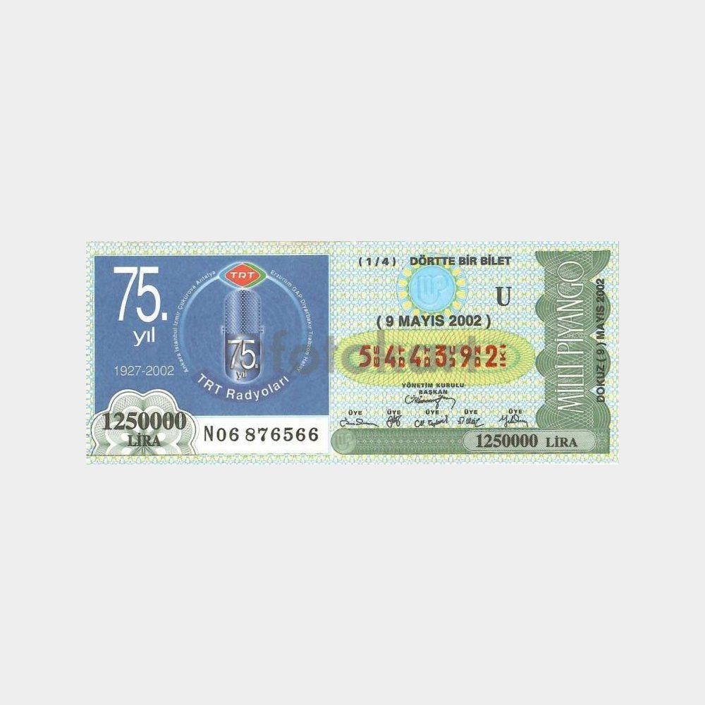 Milli Piyango Bileti, 09.05.2002 TRT Radyoları 75. Yıl U-544392