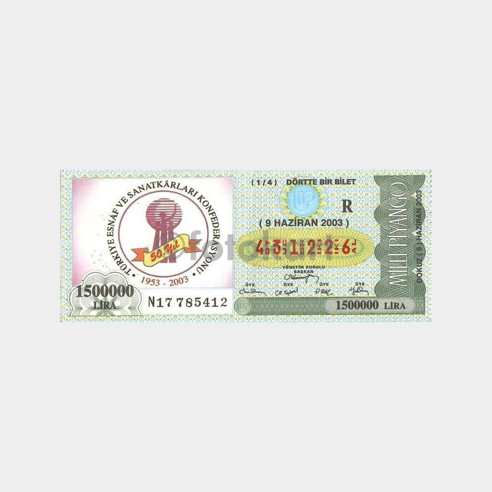 Milli Piyango Bileti, 09.06.2003 Türkiye Esnaf ve Sanatkarlar Konfederasyonu 50. Yıl R-431226