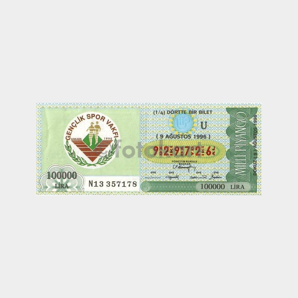 Milli Piyango Bileti, 09.08.1996 Gençlik Spor Vakfı U-929726