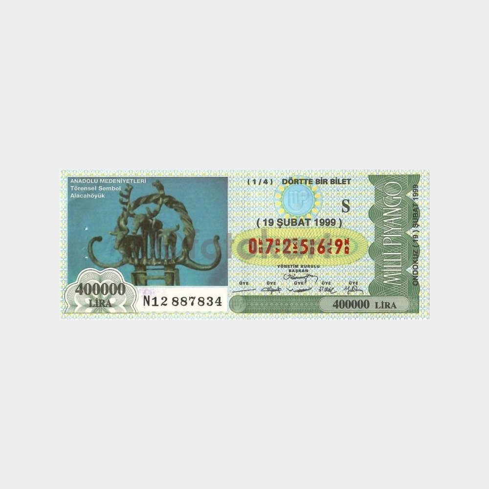 Milli Piyango Bileti, 19.02.1999 Anadolu Medeniyetleri Törensel Sembol Alacahöyük S-072569