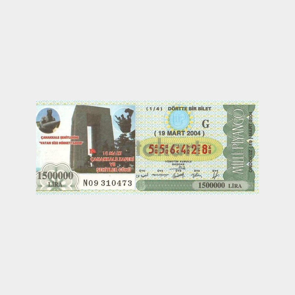 Milli Piyango Bileti, 19.03.2004 Çanakkale Şehitleri G-556428