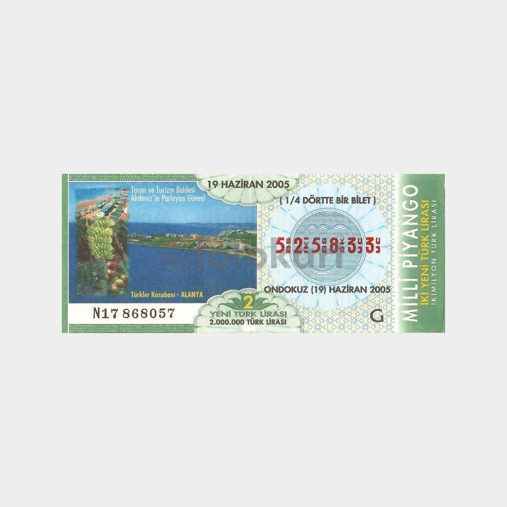 Milli Piyango Bileti, 19.06.2005 Alanya G-525833