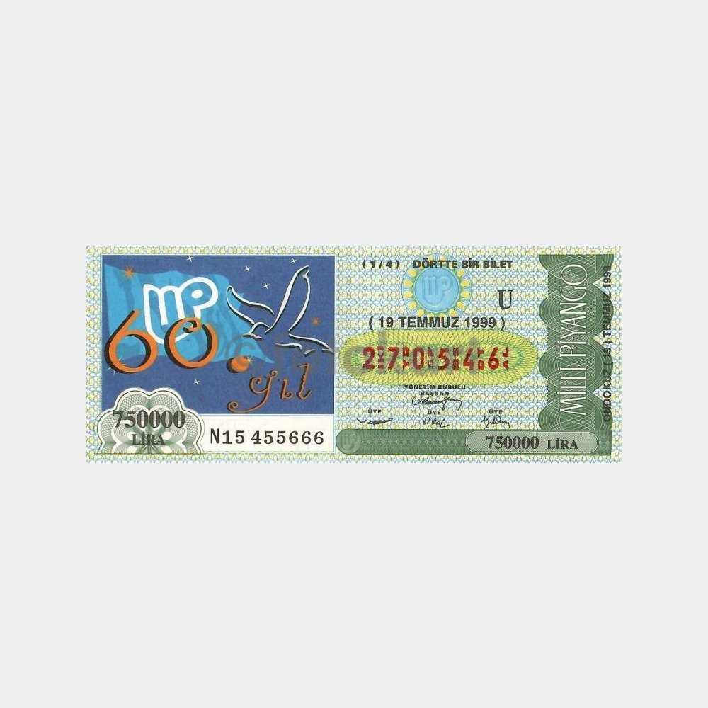 Milli Piyango Bileti, 19.07.1999 60. Yıl U-270546
