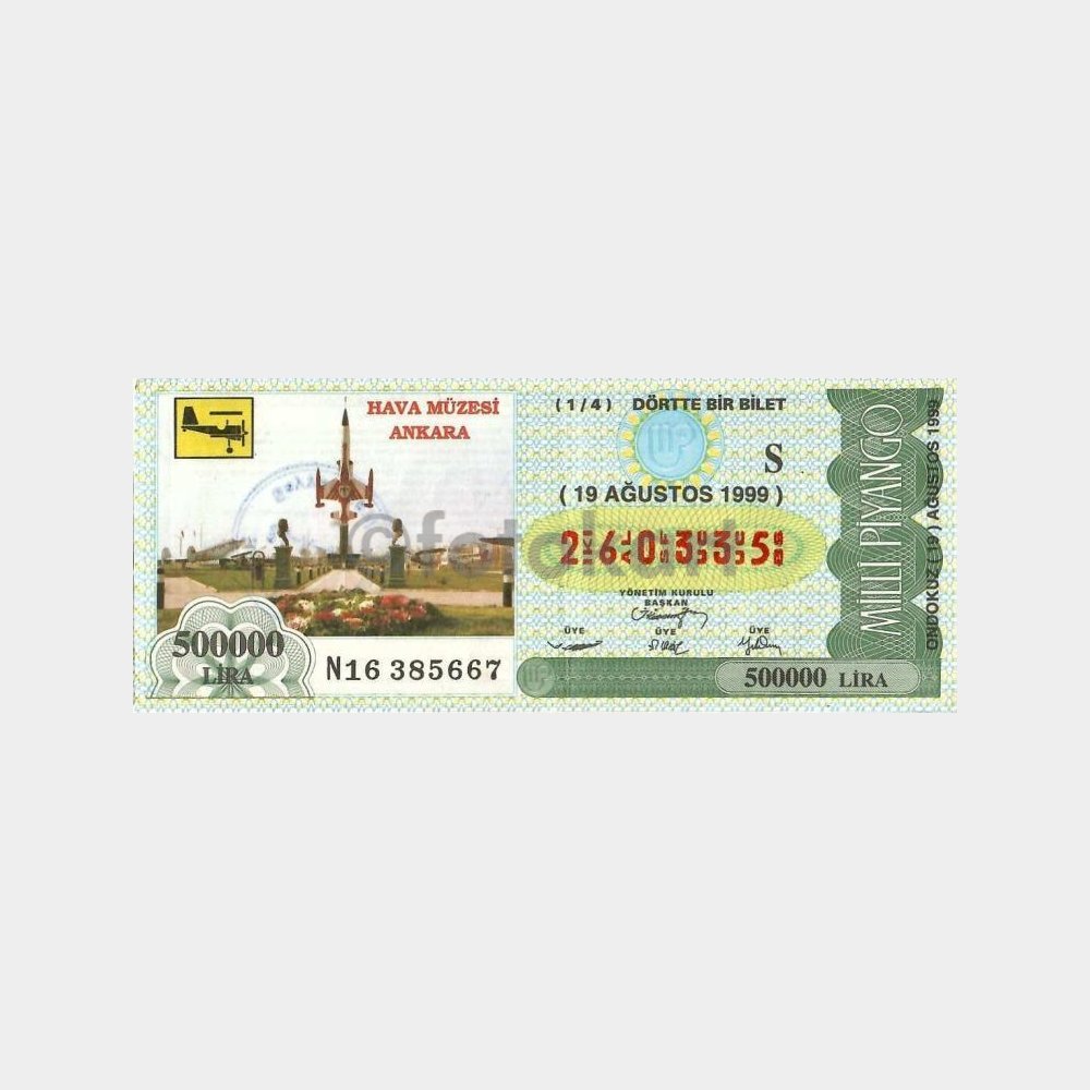 Milli Piyango Bileti, 19.08.1999 Hava Müzesi Ankara S-260335