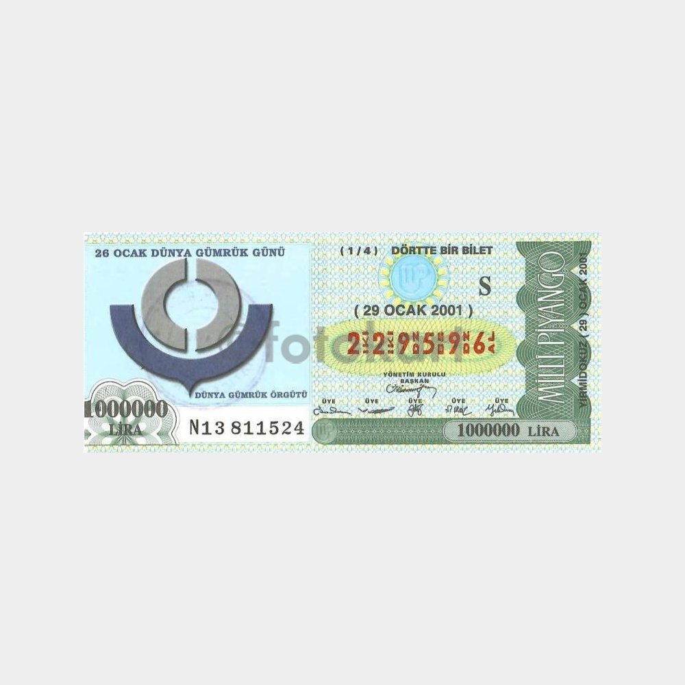 Milli Piyango Bileti, 29.01.2001 Dünya Gümrük Günü S-229596
