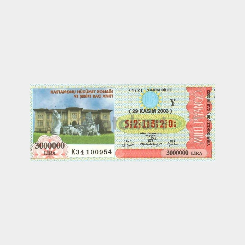 Milli Piyango Bileti, 29.11.2003 Kastamonu Hükümet Konağı Y-521320
