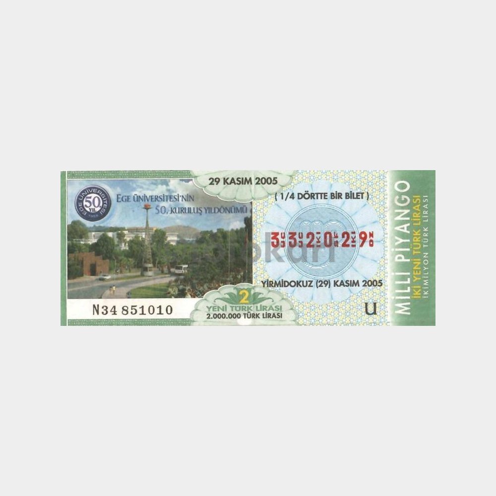 Milli Piyango Bileti, 29.11.2005 Ege Üniversitesi 50. Kuruluş Yıl Dönümü