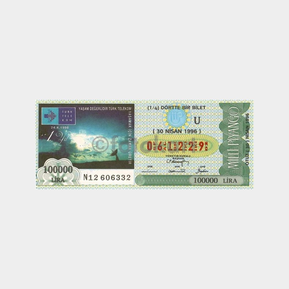 Milli Piyango Bileti, 30.04.1996 Türk Telekom 1. Yıl U-061229