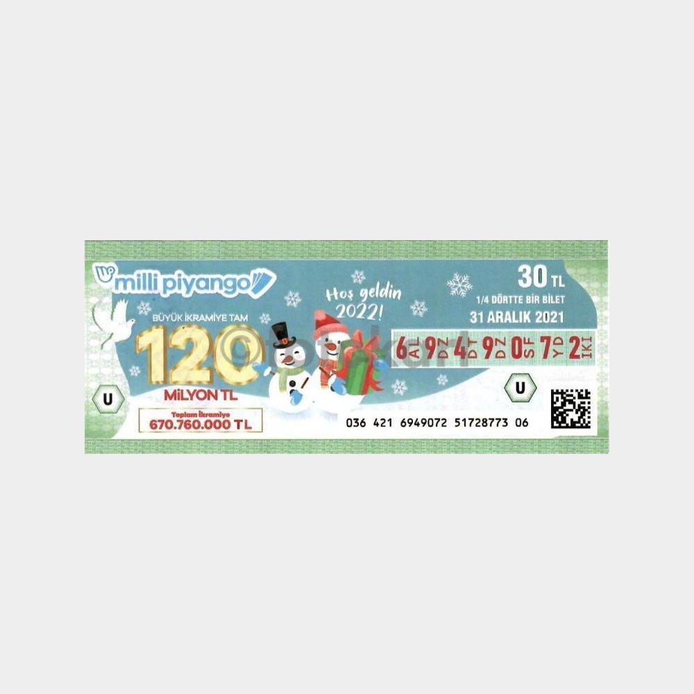 “Milli Piyango Bileti, 31.12.2021 Yılbaşı U-6949072” için yorum yapan ilk kişi siz olun