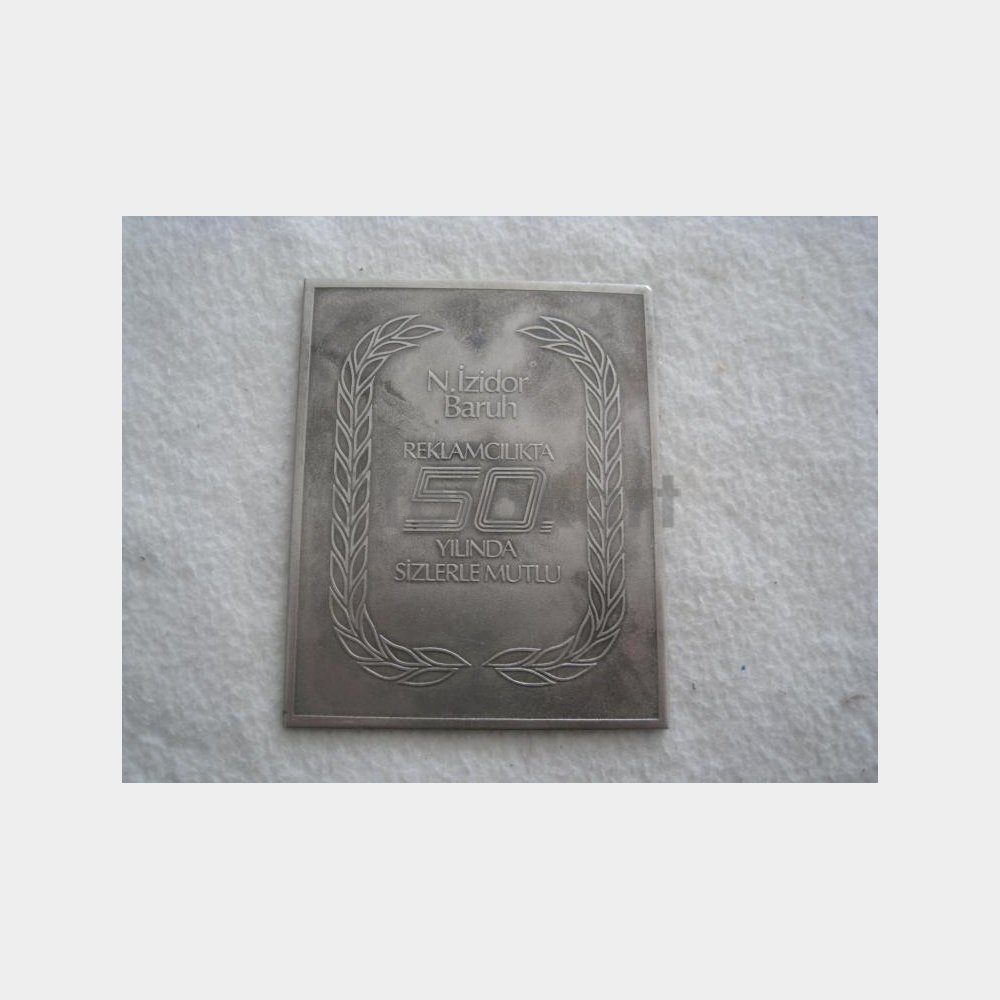 6 x 7 cm çok temiz, arkası boş plaket. (gümüş kaplama olabilir)