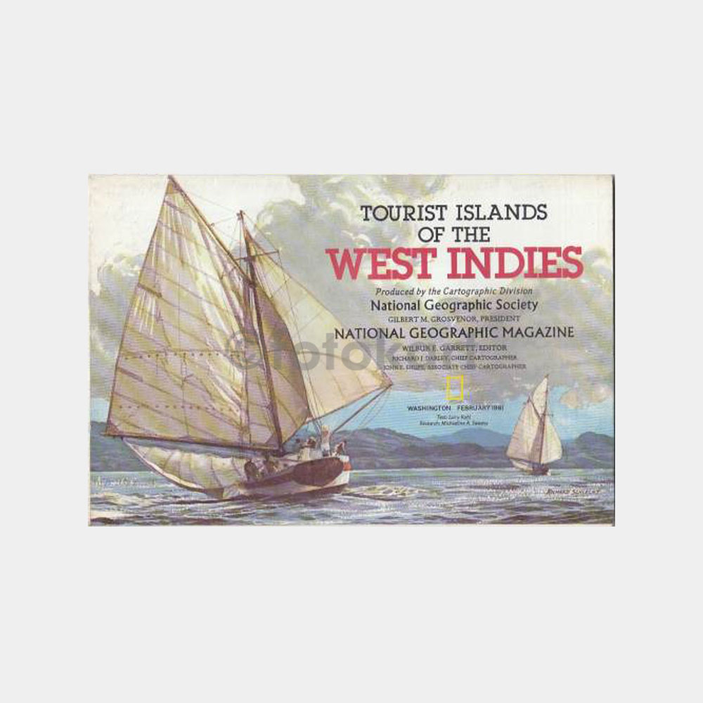 Dergi ekinden çıkan büyük ebat kuruluştan bugüne açıklamalı gösteren Batı Hint Adaları haritası. Süper bir ek.