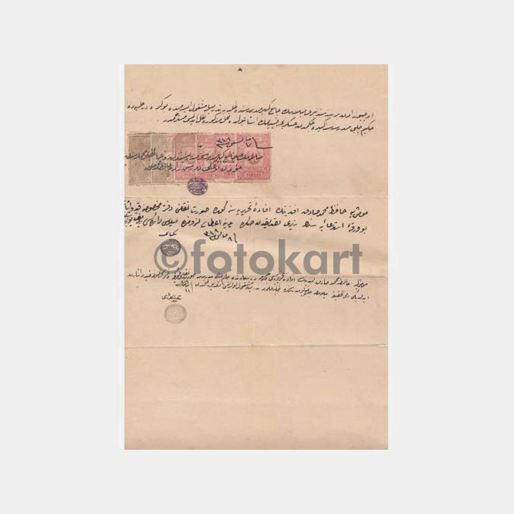 Temiz durumda 33 x 21 cm ebadında üzerinde değerli 6 adet fiskal pulu var.