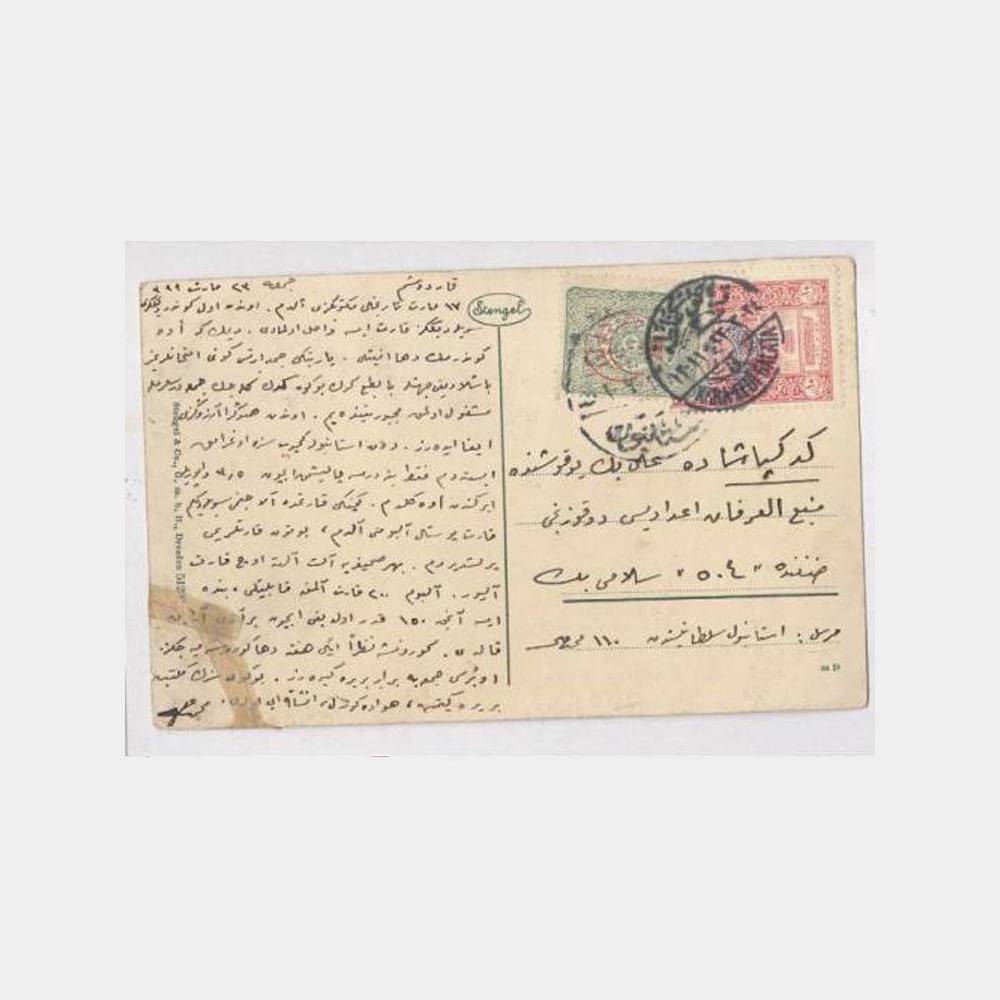 Sağ alt kenar tamirli, arkası yazılı ve Karaköy-Galata damgalı, S. M. Kl. Kreuzer-Augsburg isimli gemi