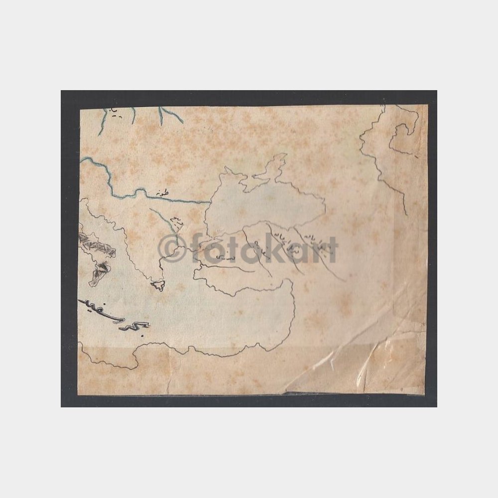 13 x 11 cm ebadında, koleksiyon amaçlı eski Osmanlıca, küçük haritasında Anadolu akarsuları hatalı çizilmiş durumda, eski kalın kağıt üzerinde, 2 kenar bantlı.