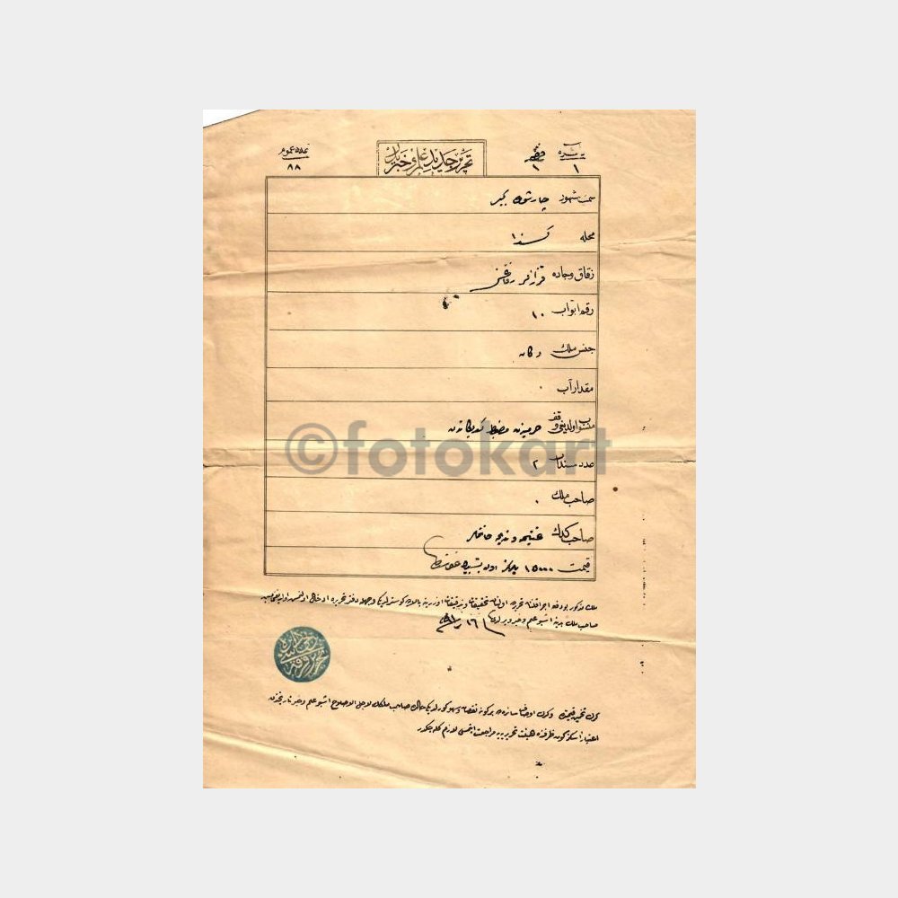 Osmanlıca Efemera – Belge Başlık İlginç Damgalı