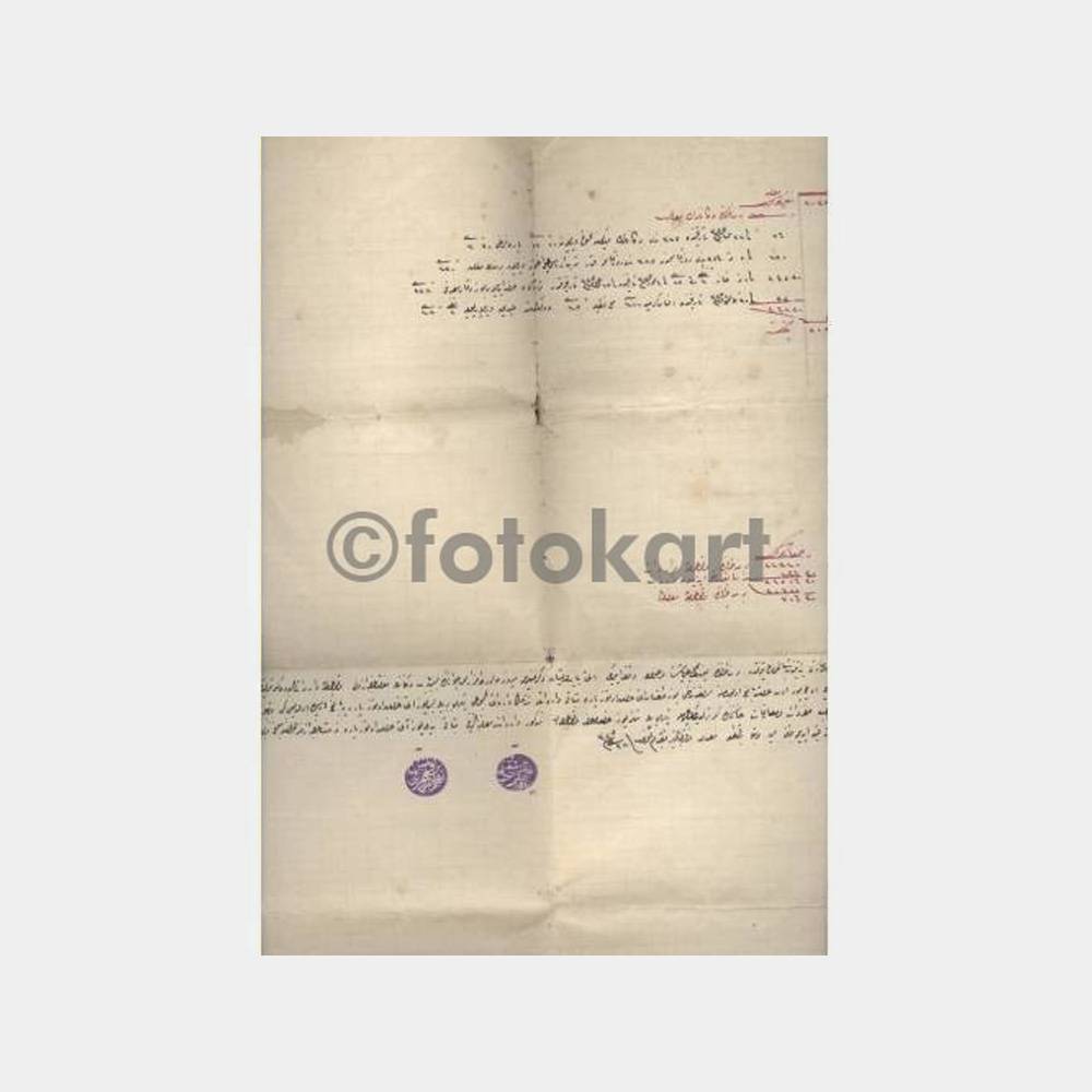 2 sayfadan oluşmuş büyük ebat üzerine yazılmış, arkada 2 adet mühürü var,